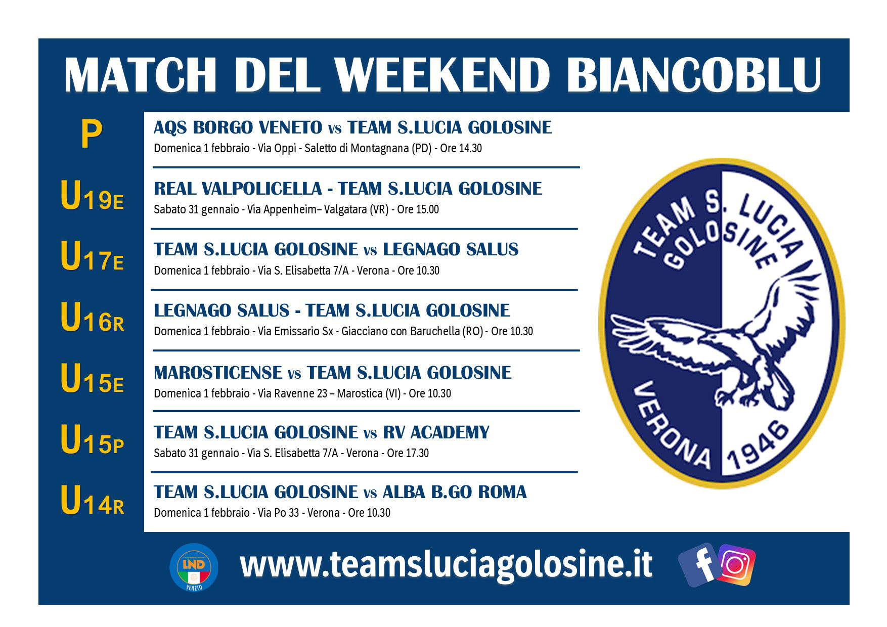 SETTORE AGONISTICO: PROGRAMMA DEL 31 GENNAIO - 1 FEBBRAIO