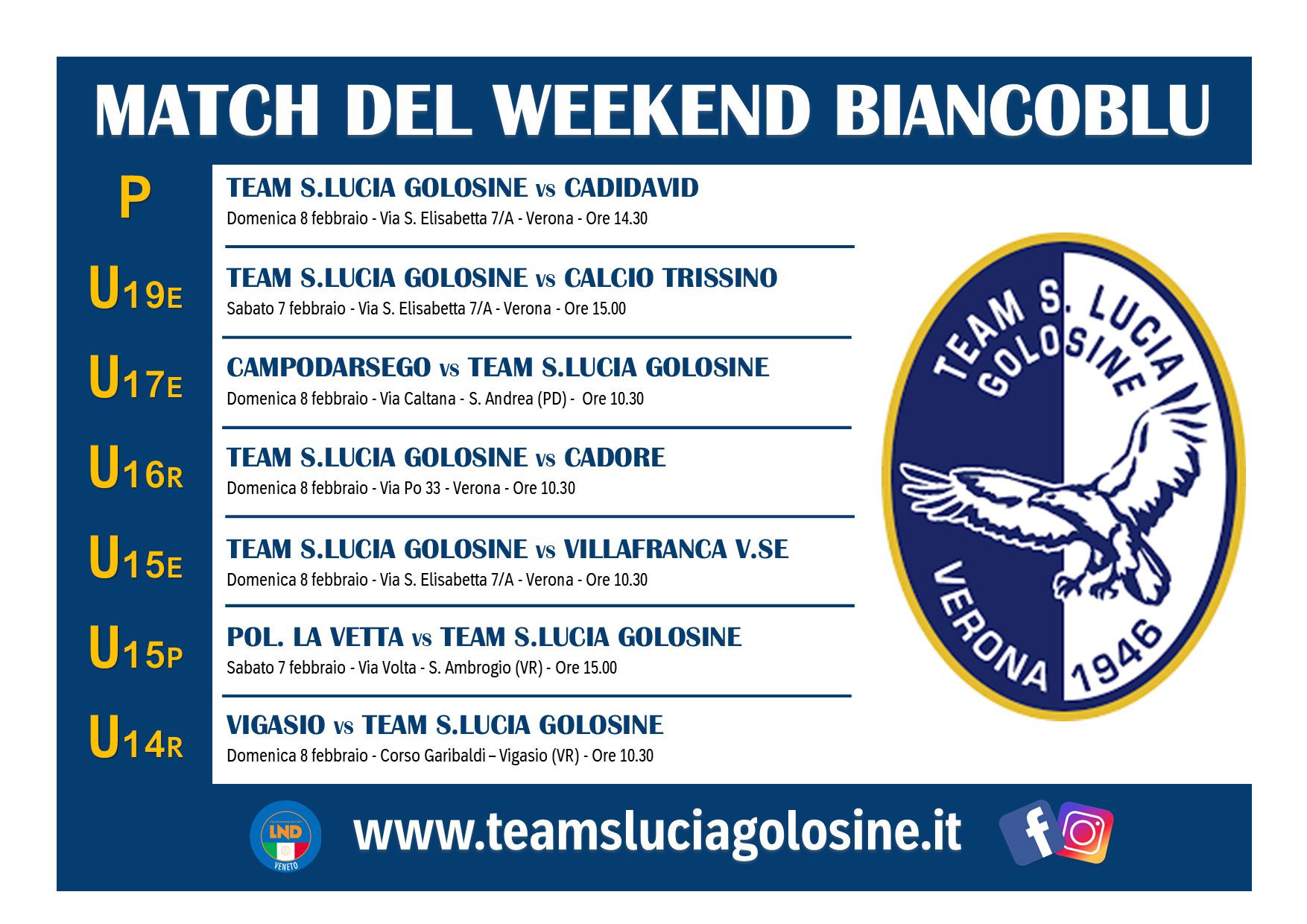 SETTORE AGONISTICO: PROGRAMMA DEL 7-8 FEBBRAIO